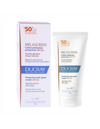 La crème antitache protectrice SPF50+ MELASCREEN est la 1ère crème antitache quotidienne très haute protection qui prévient et réduit l’apparence des taches brunes, tout en protégeant la peau contre les UVB, les UVA courts et longs, la lumière bleue et les effets délétères de la pollution. Indispensable au quotidien, ce soin innovant possède une double efficacité démontrée sur les taches brunes et également sur le vieillissement cutané : L’ACIDE AZELAÏQUE reconnu pour réduire les taches brunes installées tout en délivrant une action antioxydante protégeant la peau du stress oxydatif.