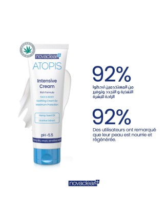 La crème intensive Atopis est recommandée pour les soins quotidiens du visage et du corps. Elle est spécialement conçue pour hydrater intensivement les peaux très sèches, sensibles et sujettes à l'atopie. Elle est recommandée pour traiter l’Eczema.